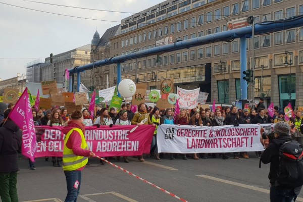 „Wir haben es satt!“ oder „Agrarindustrie raus aus unseren Töpfen!“ hallte es am Samstag durch Berlin. 35.000 Menschen, darunter Bäuerinnen und Bauern und besorgte Verbraucherinnen und Verbraucher, machten ihrem Ärger über Agrarkonzerne, Massentierhaltung oder die Agrarpolitik der Bundesregierung ordentlich Luft. Eine breite Bewegung demonstrierte für eine schnelle Wende in der Agrarindustrie, artgerechte Tierhaltung, für gerechten Handel und gutes Essen für alle.