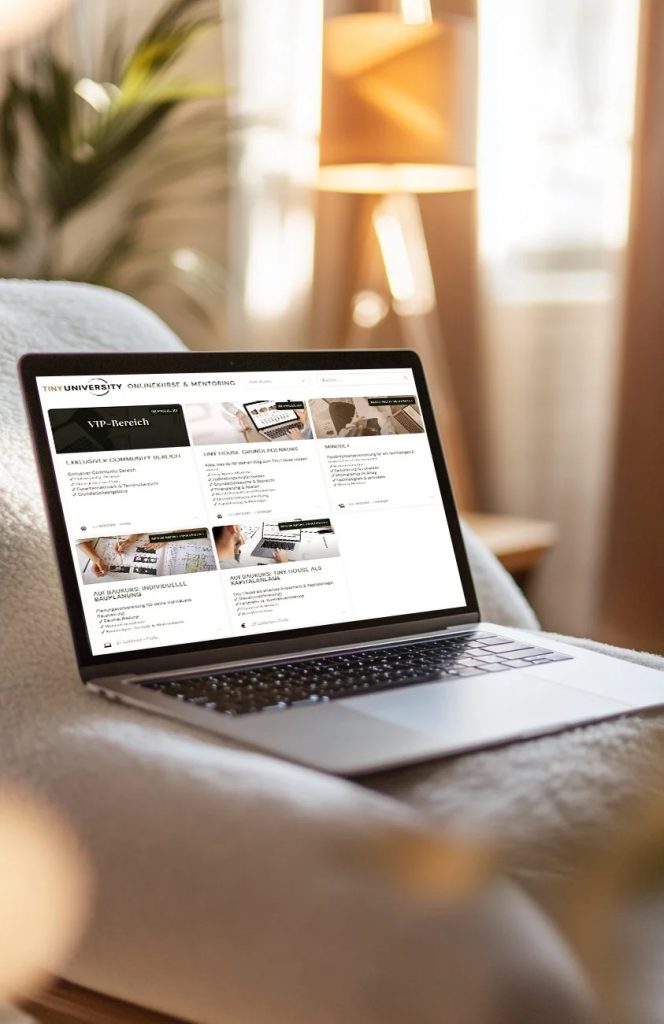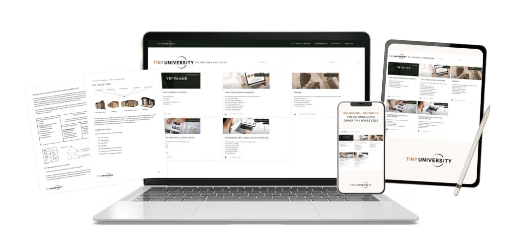 Das ist ein ganz wichtiger Punkt: die Tiny University richtet sich an Menschen, die selbst in die Umsetzung kommen wollen, aber noch nicht wissen Wie und den Weg nicht alleine gehen wollen, sondern lieber mit Gleichgesinnten und Experten, die ihnen bei Problemen eine Richtung weisen können oder an den richtigen Kontakt vermitteln können. Die Onlinekurse vermitteln dieses Know-How, kompakt zusammengefasst, und klären u.a. über das Baurecht in Deutschland auf, sodass die Teilnehmer im eigenen Tempo von Zuhause aus lernen und so für die Realisierung gewappnet sind.